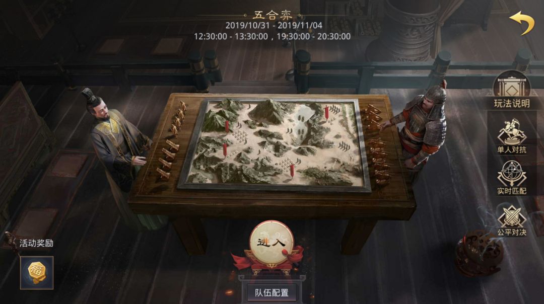 各位主公,大家好! 明天将迎来我们四周年系列活动的《五合弈》了。活动将会在10月31日-11月4日每天12:30-13:30及19:30-20:30开启。想必各位也很好奇这次新活动的内容吧?今天我们提前给大家介绍一下五合弈: 【全新活动-五合弈】 方寸之间,运筹帷幄。 古之文人常用围棋来以小见大,部队将军也常用沙盘进行战争模拟。五合弈便是率土中大型战场的缩影。 五合弈中主公可以派遣部队出征,处于防