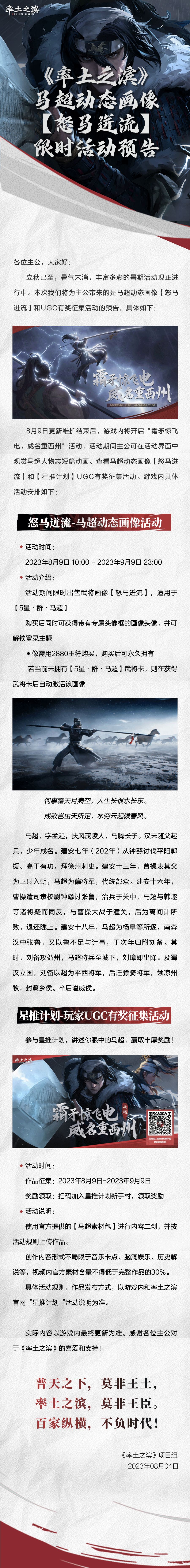 《率土之滨》马超动态画像【怒马迸流】限时活动预告