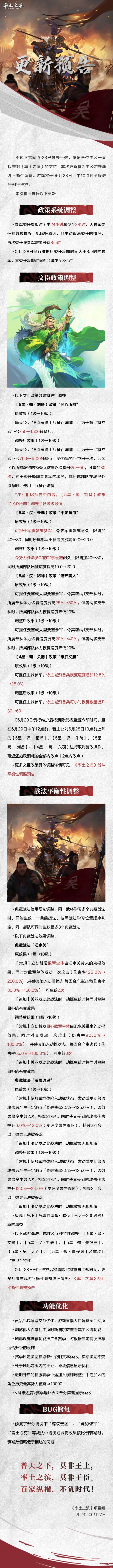 感谢各位主公对《率土之滨》的支持,游戏将于07月28日上午10点对全服进行例行维护。 同时,本次将会更新以下内容: 【新增武将】 -增加全新全赛季武将:【5星·魏·乐进】 -[第一赛季]“厉兵秣马”卡包新增【5星·魏·乐进】 -[第二赛季]“厉兵秣马”卡包新增【5星·魏·乐进】 -[第三赛季]“厉兵秣马”卡包新增【5星·魏·乐进】 -[征服赛季]EX卡包调整: [群雄逐鹿]“逐鹿中原”卡包新增【5