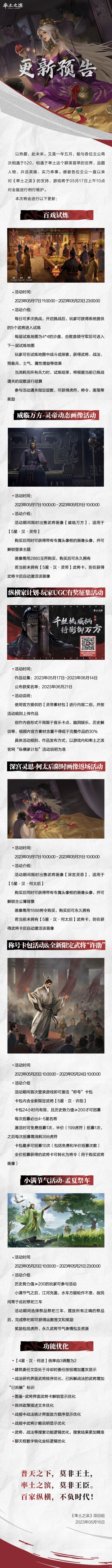 《率土之滨》05月17日例行更新预告