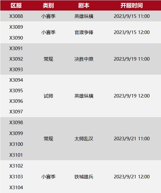 9月15日至9月21日,率土之滨征服赛季开放X3088-X3104六个批次共计17个区服。本周前线有哪些情报呢,《新赛季速报》马上送达! 9月15日上午11点,X3088一个英雄纵横小赛季开启。 X3088前线情报: 幽冀【踏歌行】与并州【秋水】(复苏)已达成合作共赢协议,将局势推向南北大战的方向。 荆益【新时代】在雍州资源州[长安]附近打响对抗的第一枪,暂时不敌【秋水】,随后【新时代】又