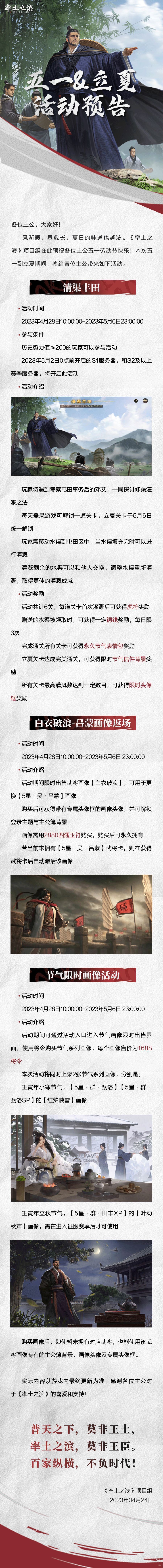 《率土之滨》五一&立夏活动预告