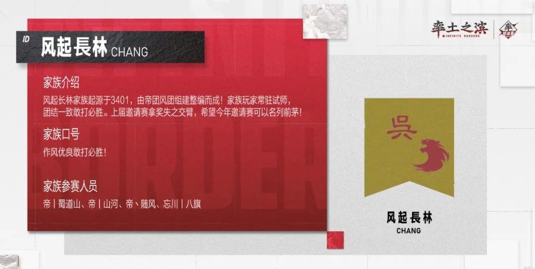 风格各异的率土家族 因邀请赛齐聚在此 相互切磋,相互学习 本期登场的又是哪些家族呢? 快来看一下吧~ 01 他们有着和谐友好的家族氛围 追求快乐,爱交朋友 希望在邀请赛中能打出自己的风格! 02 他们因为志趣相投,相识在率土 组成家族,成为家人 无拘无束,快乐游戏 03 他们代表家族,心怀不惧的闯 将每次比赛都当作经验 在赛场上散发自己的光彩 以上是部分参赛家族的风采展示,快来为自己的家族加油鼓气