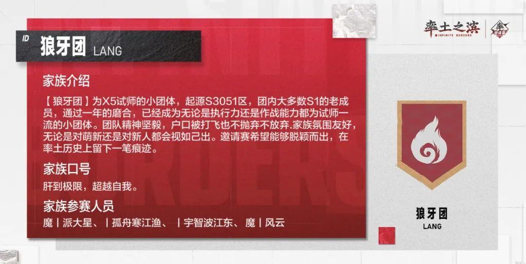 昼夜往复,月升日落 不停歇的将士们蓄势待发 向着同一个目标前进 本期又有哪些家族登场呢? 01 山上山下,皆是风景 勇者无畏,未来无限可能 期待他们在邀请赛中的表现! 02 他们兴趣相投,组成家族 注重游戏体验,追求玩得开心 祝他们在这次赛程中玩得愉快! 03 他们征战沙场多年,坚韧而强大 总能在逆风中把握方向 以大无畏的英勇拿下征服! 以上是部分参赛家族的风采展示,快来为自己的家族加油鼓气,同时