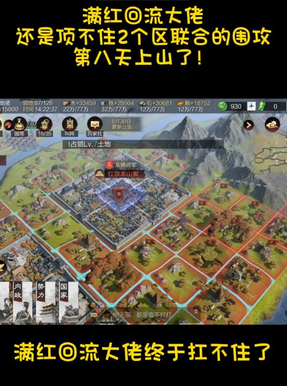《率土之滨》西北地域服4019【臊子面】开启已达三周,战斗持续升温,洛阳三方会战! 【4019臊子面】速报 9月15日下午,荆州【鬼吹灯】盟主被扬州【风雨雄霸天下】沦陷,大量人员下野,扬州【风雨雄霸天下】借沦陷地,飞至虎牢关口。与此同时,凉州【花间钰】在潼关关口建立要塞群,青州【凌烟小居】也同样向延津关口飞地。 19日中午,并州【肃丨统天下】占领冀州【军师联盟】都城常山,【军师联盟】解体。