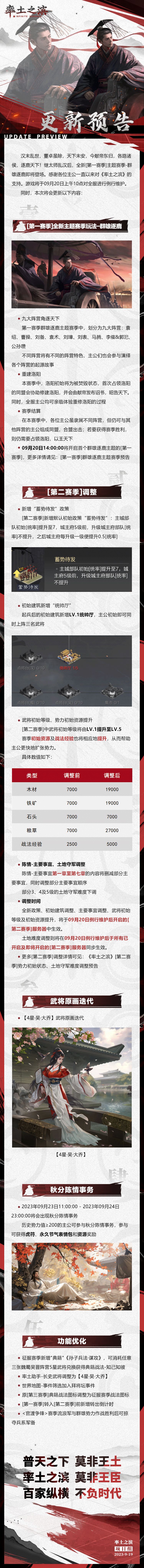 各位主公,大家好! 《率土之滨》六周年全新视觉客户端,在官网渠道开放更新已有3天,期间有不少主公参与了我们的先行体验。同时,我们也收到了不少热心主公的众多有效建议和反馈,给到我们更明确的优化和调整方向。 以下是我们针对新视觉客户端的相关更新计划: 9月29日更新计划 9月29日例行更新维护后将陆续开放其它渠道的新视觉客户端更新,同时将会进行如下优化调整: 1、界面视觉优化 由于不同机型存在光暗显示