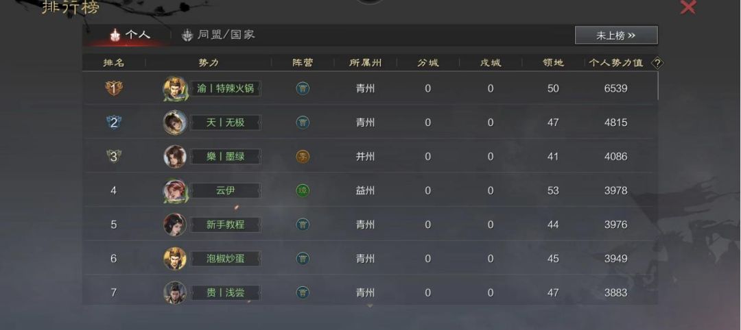4205【庐州烤鸭】已开区5天,烤鸭虽然还没正式上烤架,但已诱引多人前来争抢!让我们一起来回顾一下这周的开区故事和趣闻。 【4205庐州烤鸭】速报 随着华东地域服的火热开启,开区24小时竞争持续白热化。根据24小时开荒数据统计,本区备战盟【青神盟】强势登顶,盟等级达到15级,并且在个人榜上也有众多大佬位居榜前十。 值得一提的是,全区盟前十,青州势力竟然强势入主了3个同盟!其中身居青州的曹操