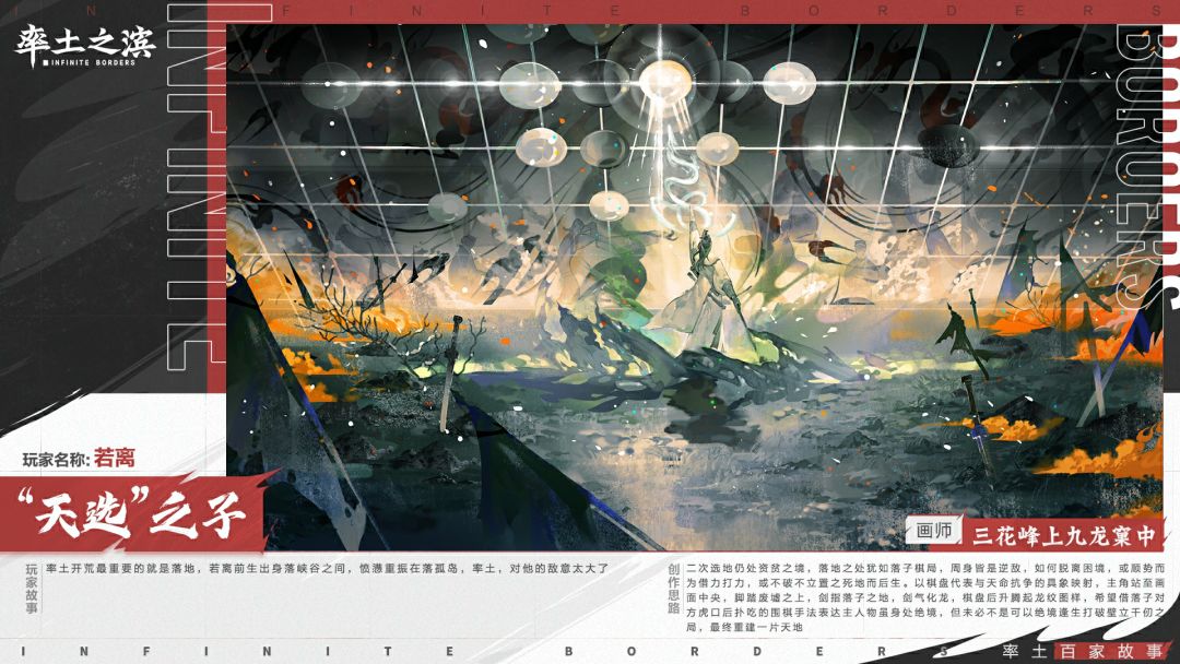 率土八载,岁月轮转 率土的方寸沙盘见证了主公的百家风采 斥候开道,巨械对垒 烽火长枪,一骑当千 指点江山,挥斥方遒 …… 我们见证了彼此的成长与蜕变 风采各异的主公,演绎出了百家篇章 那么,率土主公们的故事 在插画师笔下,会有怎样的演绎? 《“天选”之子》 《拆迁天花板》 《盟主白衣渡江》 《平民小内最强谍王》 《上阵父子兵》 《外交家纵横捭阖》 《嘴强王者》