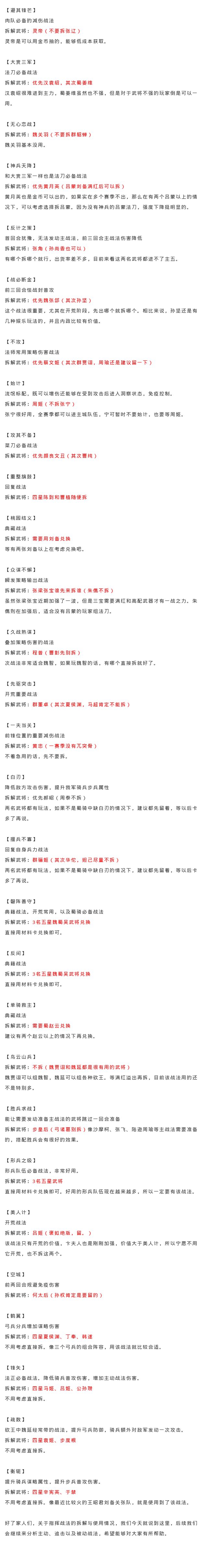 本期攻略作者:Glavcc 本期攻略关键词:战法冲突 前言 我们知道,战法冲突会让一支队伍收益降低,事倍功半。那么,如何避免战法冲突呢?今天笔者就从战法冲突原理出发,通过实例讲解,尽力帮助大家搞懂战法冲突。 高能预警 首先说两点前置知识: 战法分为四类:被动战法、指挥战法、主动战法、追击战法。 后文所说的“同类战法“,均指同为四大类中的一类。 战法冲突规则有两种:数值替换和同类型不可叠加。 如果同