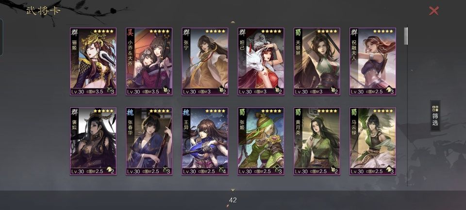 尽管如今现实里的七夕也就那样了,不过率土之滨的游戏次元,还是真心很懂男玩家们的。对于那些已经觉醒了,不愿意再舔的朋友们来说,在率土里翻翻牌子不是更香嘛! 本次的七夕节活动,率土之滨可算是把全体妹子都给摆上台面了,从五星S到B等,总共42个红颜武将可供随机抽取。相信大家都已经在规定的时间里抽完了,本文做的盘点,只是按照她们的人物星级和战法评级做个分类。在我个人看来,可以大致分成三个档次的中奖情况。接