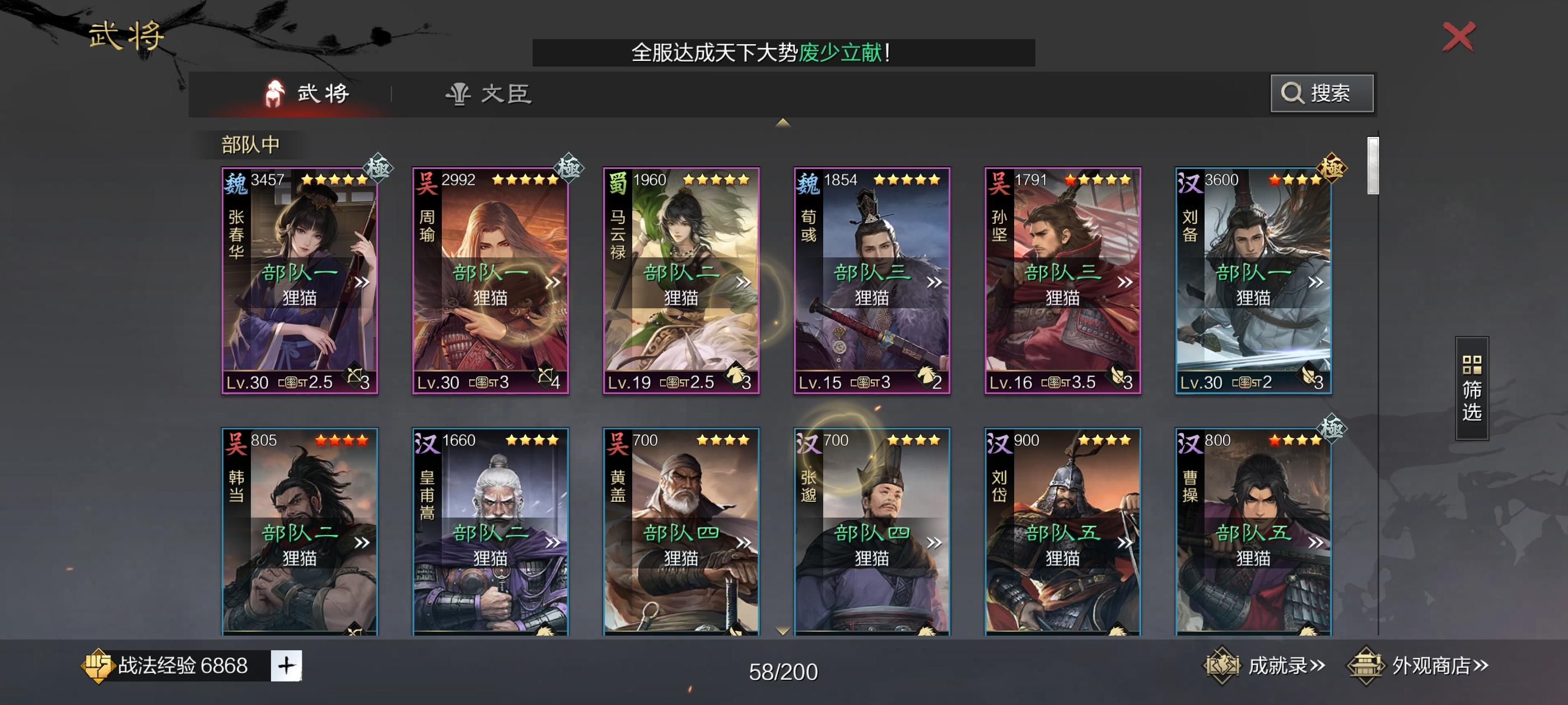 这赛季前半程是我哥们控号,包括跟的团都是他选的,所以我只了解个大概(因为我接手的时候早早就开始刷武勋了…)局势差不多是最开始病院、问君盟以及悟盟联手,打戰盟、拼多多盟和雪盟(拼多多盟其实不是盟友…一直和戰盟在打,只不过他们也在同时打问君盟),后续悟盟与病院反目成仇。病院早早拿下洛阳,虽然中间11月14日赵威当君主被沦了一次,但是影响不大这赛季主五最开始是4队骑兵加上一队长枪纯刀,体验了满红的数