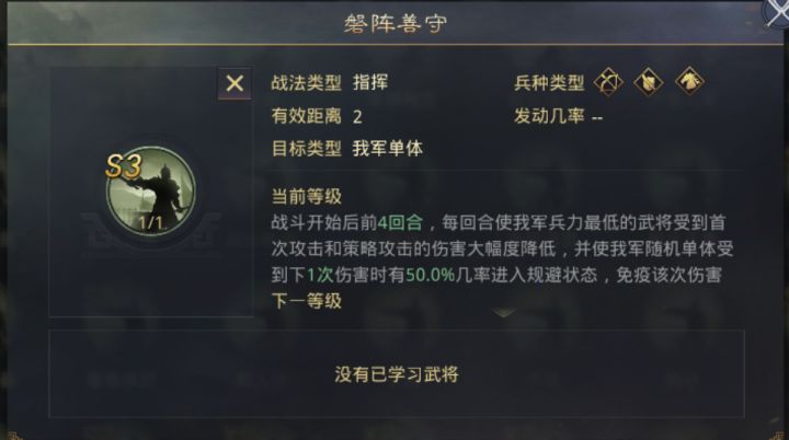 磐阵善守是三赛季的典籍战法,强度还不错磐阵的效果详细解读起来,是两个前提和两个效果两个前提是:两个效果是:会比如说:第一回合,磐阵使我方A武将进入规避状态,敌方中了反计之策的B武将对A发动伐谋,中了反计之后B的伐谋伤害仅有200,意味着此次规避效益仅有200,即使没有磐阵的规避,这个伤害也很低。如果B武将没有被施加反计之策,这个伐谋可能会打出1000的伤害,磐阵规避了本次伤害,规避效