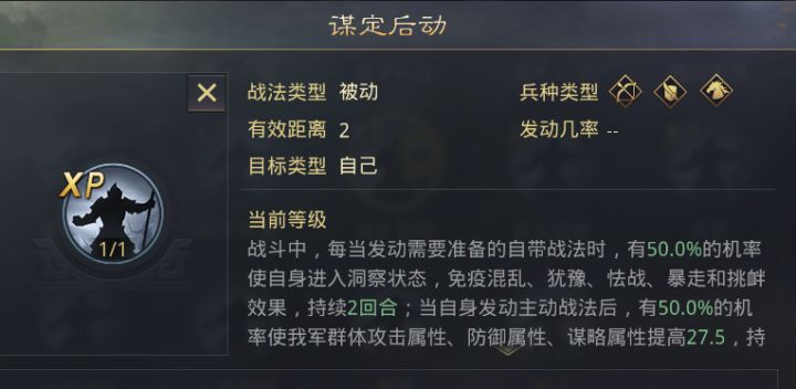 一、谋定后动简介满级谋定后动的效果有两个,二、如何用好谋定后动1. 带谋定后动的最基本条件是武将自带战法需要准备谋定后动只会因为发动需要准备的自带战法触发洞察,所以学习的战法比如一骑/十面不会触发谋定的洞察,荀彧、张春华这些自带瞬发战法的武将不能学习谋定后动!2.带谋定后动的武将第三格战法最好是瞬发且发动率较高的主动战法谋定后动的第二个效果是,只要武将发动主动战法,就会提升我军群体5