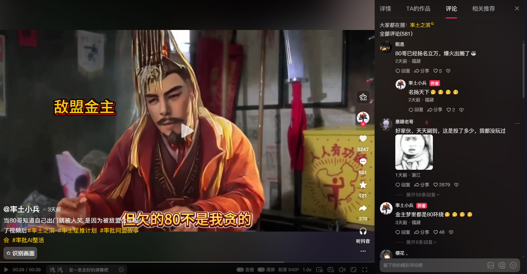 怎么最近几天抖音这么多率土80哥的视频啊?我一个打王于兴师的天天可以刷到,基本一天得刷个五六条,真是敌方金主给抖加吗? #游戏日常#游戏杂谈