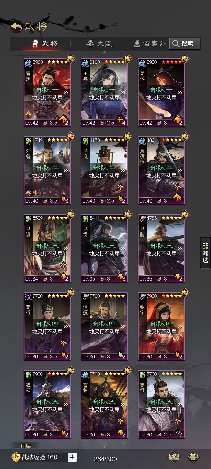 马上进入s2赛季,战法还有个百战没截屏出来,兄弟们帮忙配一配开荒和打架队伍