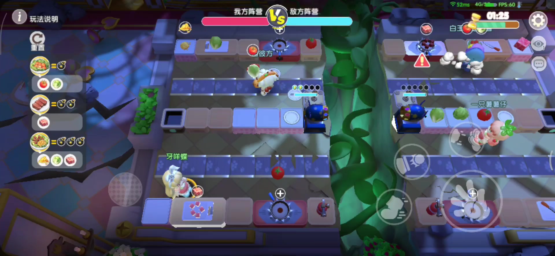 视频中有很多失误,比如最后两轮拼菜拼错了,有些拿菜拼菜步骤卡了一下,因为up是用手机玩的,如果保证无缝衔接非常丝滑流畅起码最后空余10秒以上,用手柄上限就更高了。 说一下具体思路: 1.菜单顺序固定循环: 原味——红豆——肉 三个一个循环,因此熟练后不需要看菜单,切菜切完红豆就是肉 2.打法分为两个部分: 开局四个盘——刷洗五个盘 因此差不多是九道菜才能满足要求,大多数人8道菜就卡住了(差不多54
