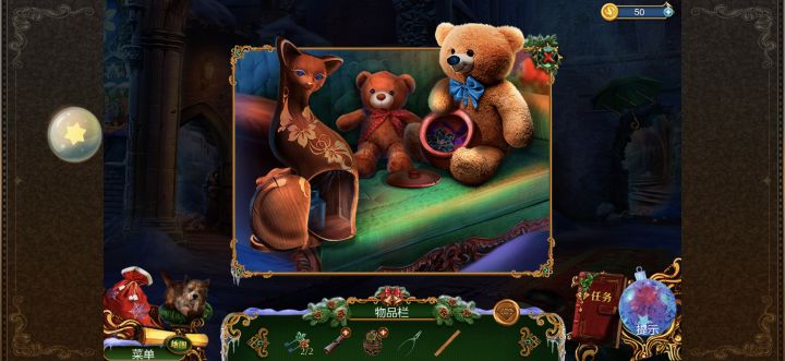服了,圣诞精灵:奥兹的麻烦这里猫肚子里的图纸出来了,然后点不到道具栏,根本不能进行下一步,用提示给我重置了两次,到这里还是不行,服了