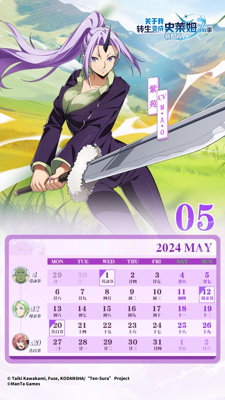 各位转生者大人,五月快乐!转眼间天气就热了起来,颇有一些夏日将近的气息,世界的每个角落都洋溢着春日的活力。小假日也即将来临,想必大家都早已定下了五月的出行计划吧?送上一份五月日历,祝转生者们出行愉快!★~SPECIAL DAY~★5月1日劳动节:放下一切,好好享受黄金假期吧~ 5月12日母亲节:感谢给予我们生命之人,在此送上最真挚的祝愿。5月20日告白节:快把耳朵凑过来,我有一句悄悄话想