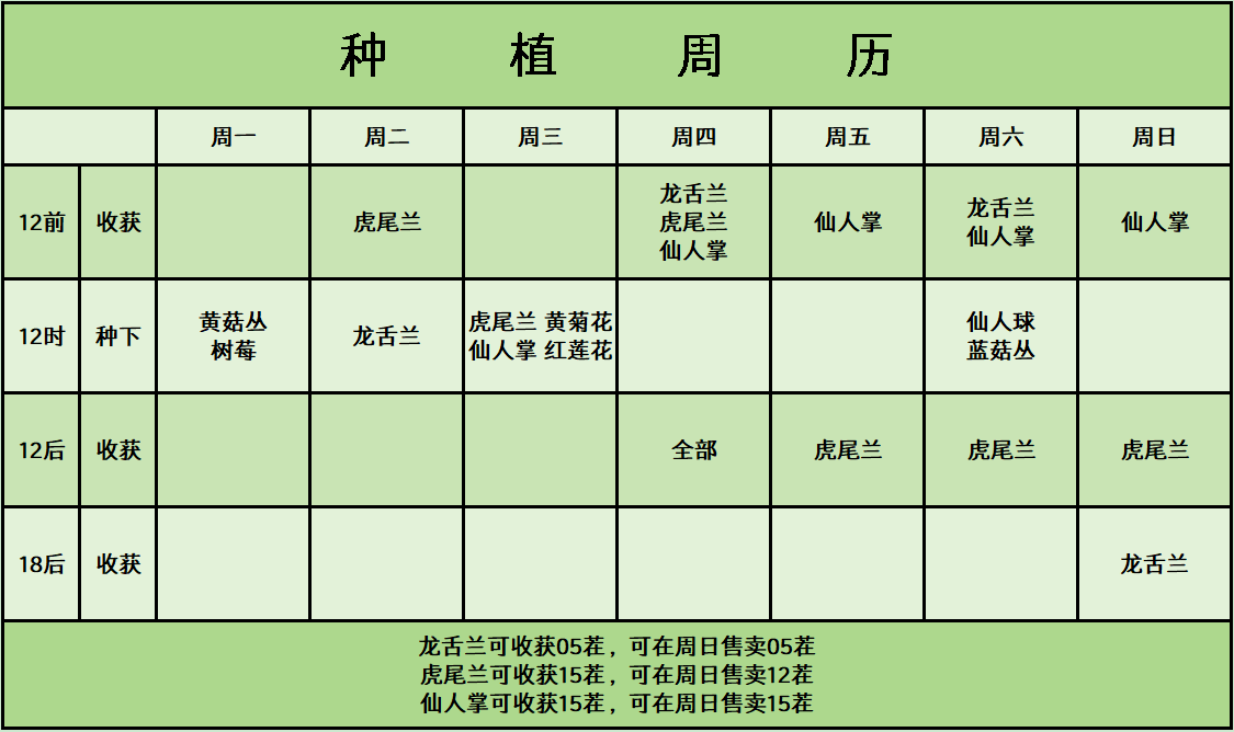 #游戏攻略 1. 序言 远洋贸易,俗称卖菜。水岛、鸡岛、沙岛、鱼岛、矿岛的商店共出售10种作物。种植作物并收获后,可在水岛的白色建筑处出售产物。 当前版本中,周末更容易发现高值菜价。作物是有限的,为赚取更多梦币,在周末高价出售产物是不错的选择。 然而,产物具有保质期,经过4次凌晨04:00后,背包中的产物将因变质而无法出售。另外,作物也有一些设定,在不同时间收获,最终产量不尽相同。因此,合