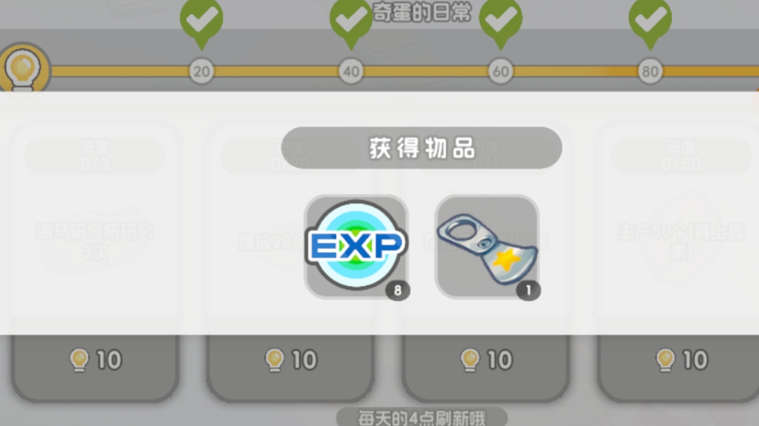 如果你因工作或学习等原因每天上线时间有限就用我这个方法快速完成每日任务,五分钟内即可完成,快速白嫖拉环,按以下步骤完成1、每日登录,上线就+10进度2、上点压力+10进度3、去视觉层后立马回来+20进度4、随便找个岛拜访完回来+10进度5、去思维肘击一下+20进度6、随便放五个建筑然后删除+10进度7、随便抽一发+10进度,如果没拉环就删点马路再放回去8、随便做个菜+10进度,如果