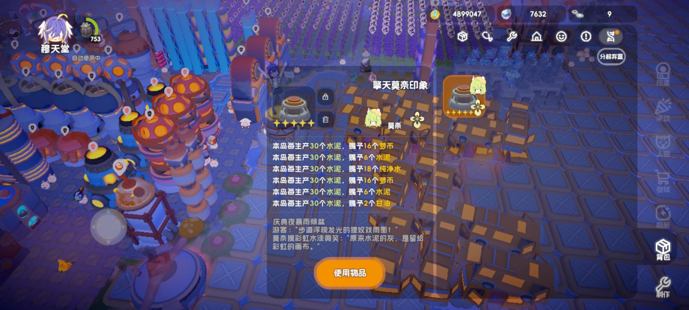 每个岛放的满满登登的全是机器,希望能给机器减减负,多出一些好看的布灵布灵的装饰品装饰一下我的小岛就好了,后期没事情干了收集装饰品研究造景多杀时间啊,现在已经进入每天挂机养老模式,哎…强烈吐糟那个集中营,太贵了,中氪都很难拿到,搞得现在半个岛都得放帐篷,严重影响我研究布局!