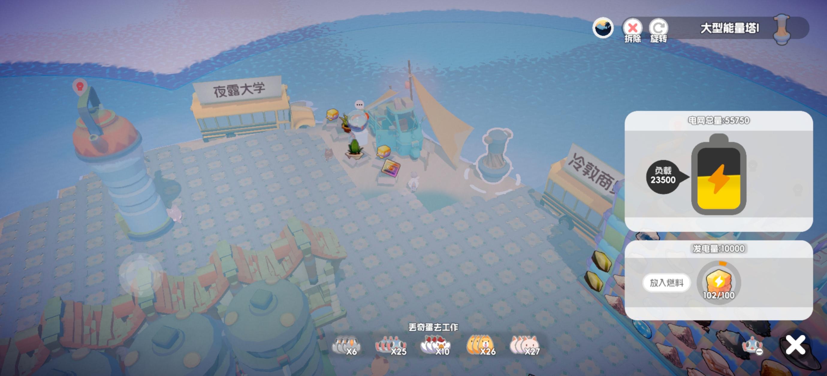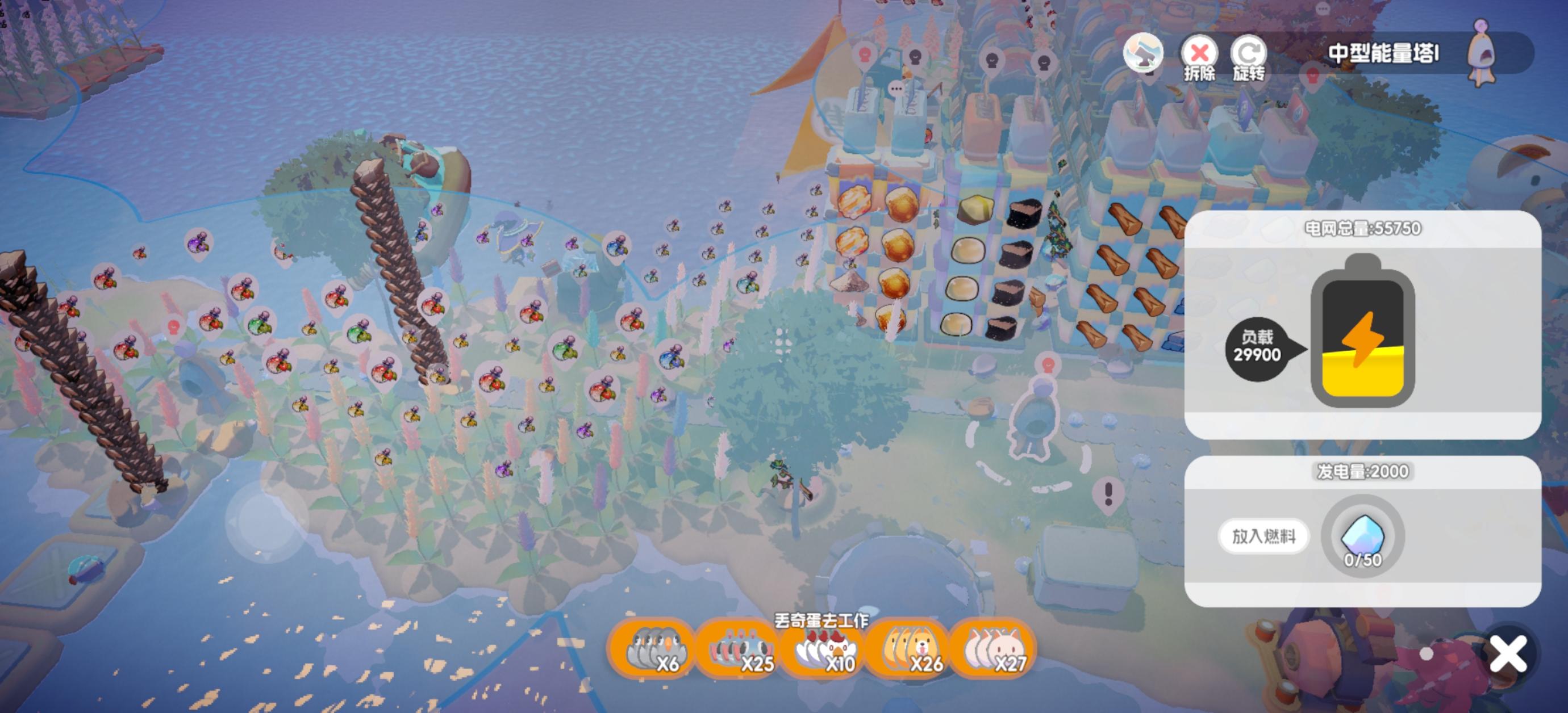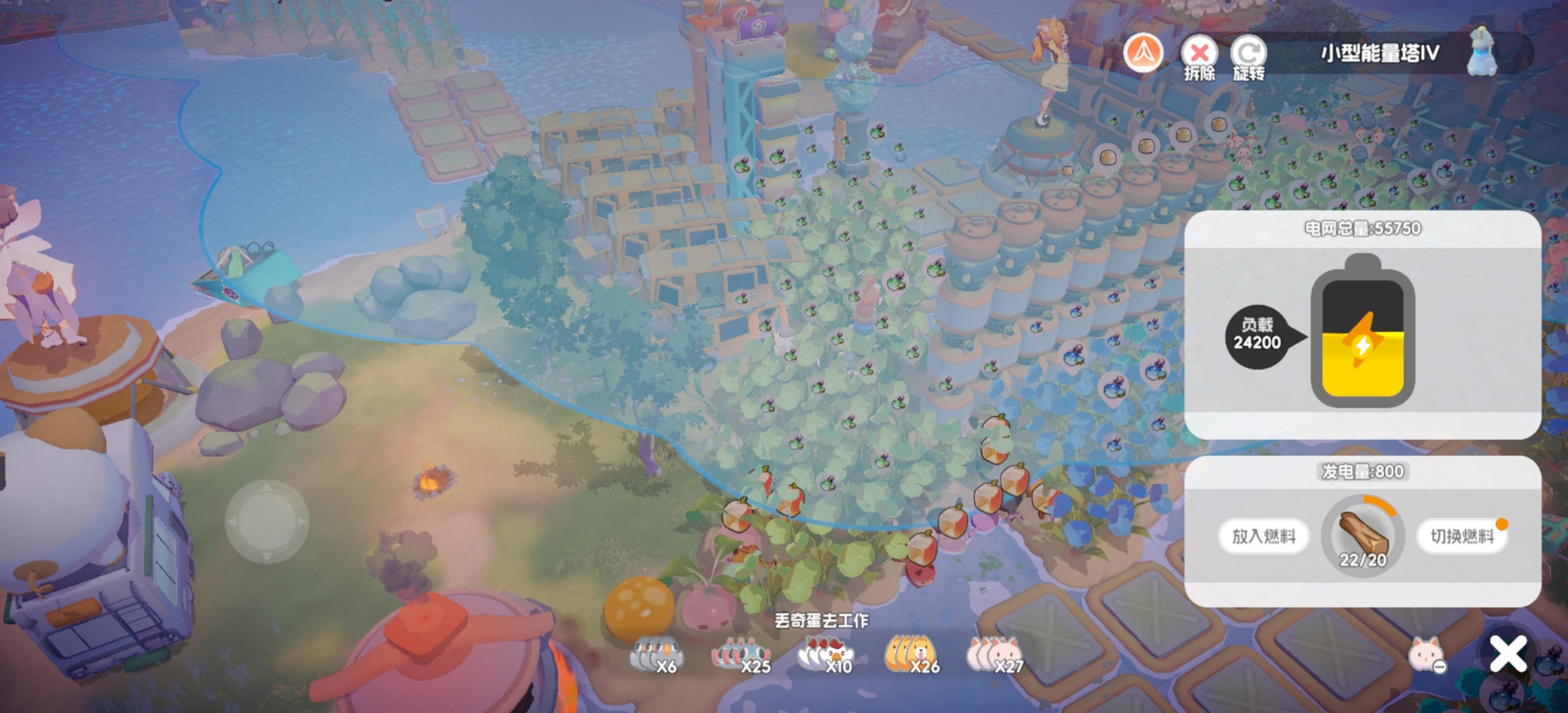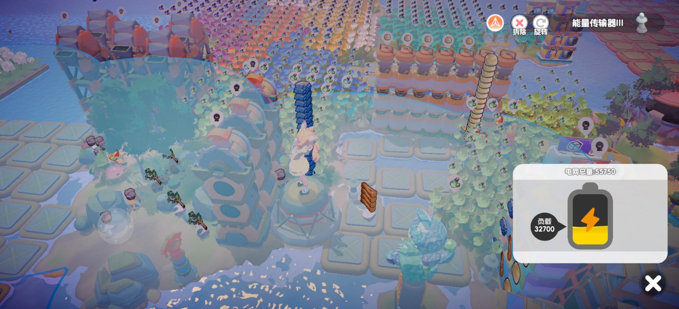 电网系统,这是我在其他游戏里面没有见到的设定(估计是玩的游戏少)。在游戏里面只有在电网覆盖的地方,设备才能正常工作,不然效率慢的你受不了。随着游戏等级的提升,发电设备也会更新换代,燃烧的材料也不同。但是这里面每一种不同的燃料都有重新制造一个新的发电设备,而不是一个设备升级可以使用多种燃料,这个可以整合一下。这个电网系统有意思或者说骚操作的地方在于你可以在一个岛上面做一个大的发电基地,然 后用类似于