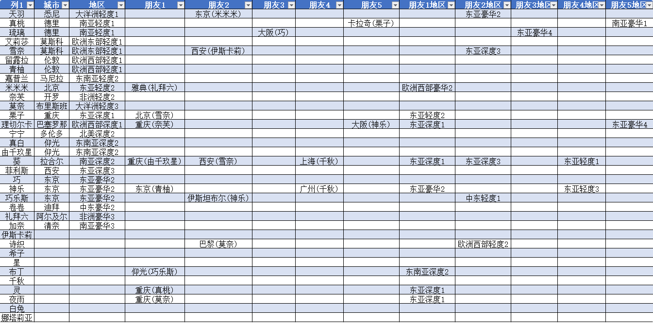 更新一下,还有没有知道其他角色封面照及朋友所在城市的