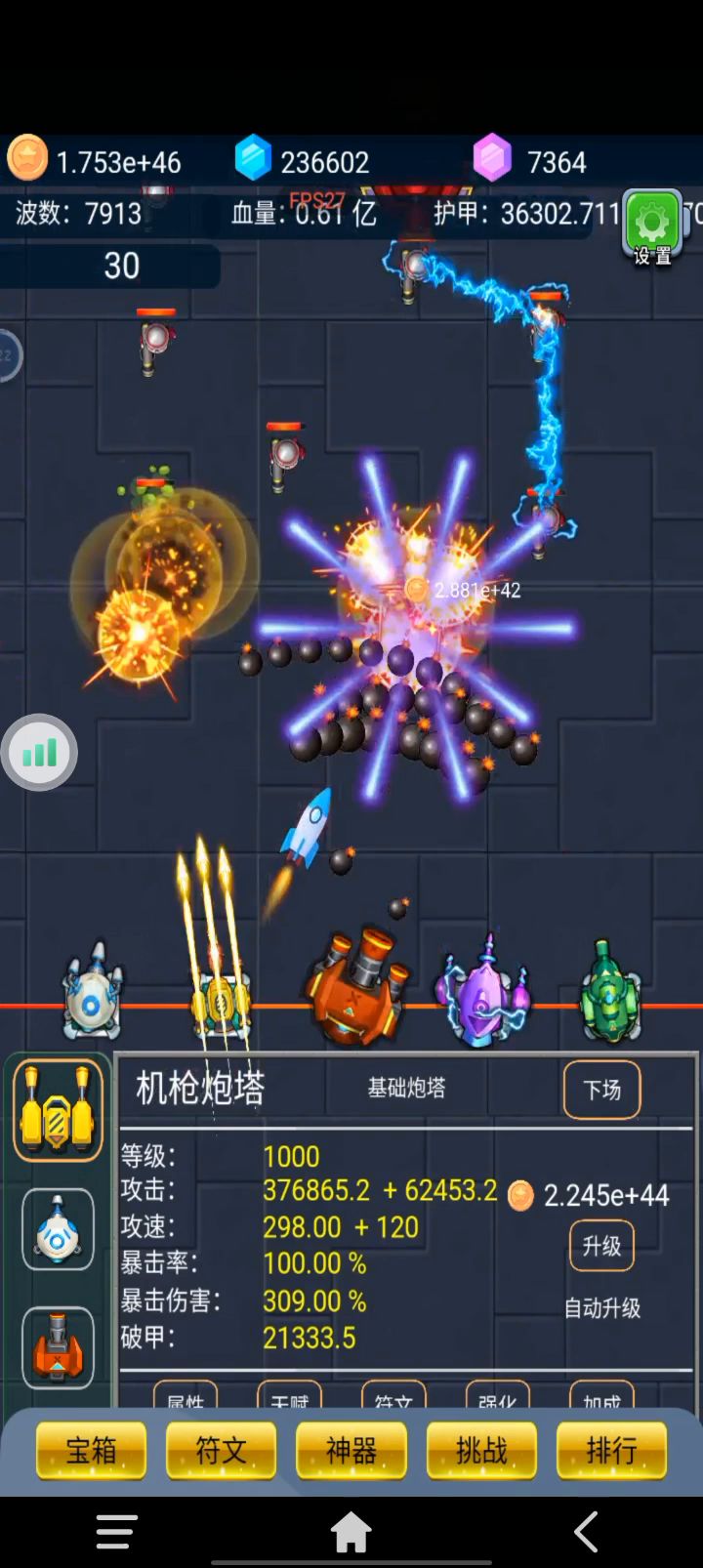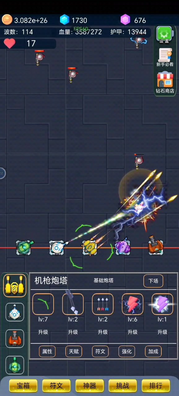 爆裂塔防,在免广告后的程序化刷挑战,一天几万💎,红宝石