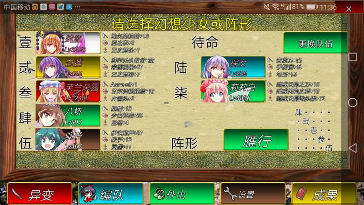 纯木队输出点是第一位幽香,百分百反击。其他四个相当于加buff吧我的理解,奶量绝对够的。幽香的印我带的是体力,不用顶配,应该也可以试试带攻击。