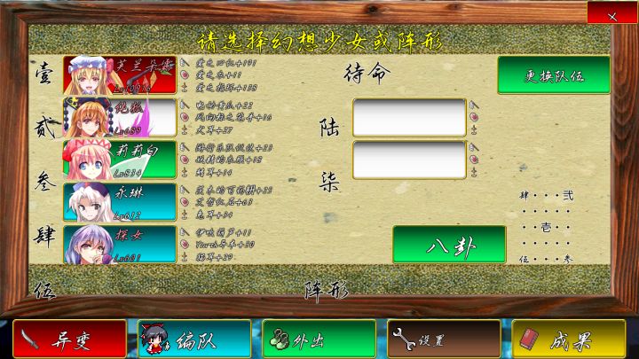 还没打纯狐的用帕秋莉代替,一定要放在第三位。有了纯狐一定(最好)要带上彩虹石,变成木系。