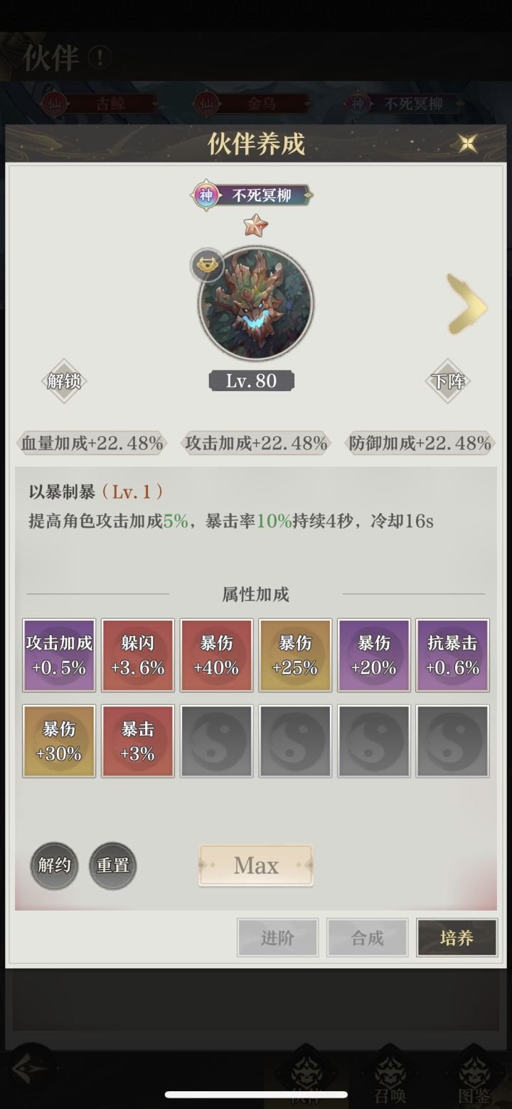 一、性价比最高的氪金法等8折再氪氪完先搞永久卡,再买伙伴召唤礼包,然后就可以养老了二、伙伴选什么忠告:不要盲目追求神品,仙品一样可以玩。神树和仙树技能完全不一样,所以不推荐换仙树!1.氪佬买神品:狐狸、霸天战熊、不死冥柳优先战熊4星、柳树4星,狐狸1星或2星都行2.仙品:狐狸、金乌(前期)、古鲸(后期)、霸天战熊输出不够带战熊,生存不行用前3个3.伙伴升级提升的属性原大于升阶,所
