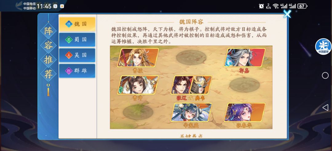本人呢是首日服玩家,目前战力6e,最近在群里和人讨论阵容的时候发现每个人看法不一致且很容易受到外人带偏导致很多萌新不知道玩什么怎么搭配阵容,所以这一篇讲讲阵容搭配,适用于零氪微氪,大佬请拉满谢谢。 对新人来说阵容搭配其实按照他的阵容推荐来就好,我就说一下各个国家目前在首日服的强度来给大家做个参考。 首先说一下吴国,从开服强势到现在了,PVP永远滴神,只是优先级从开服的断档t0变成了现在的t1了,但