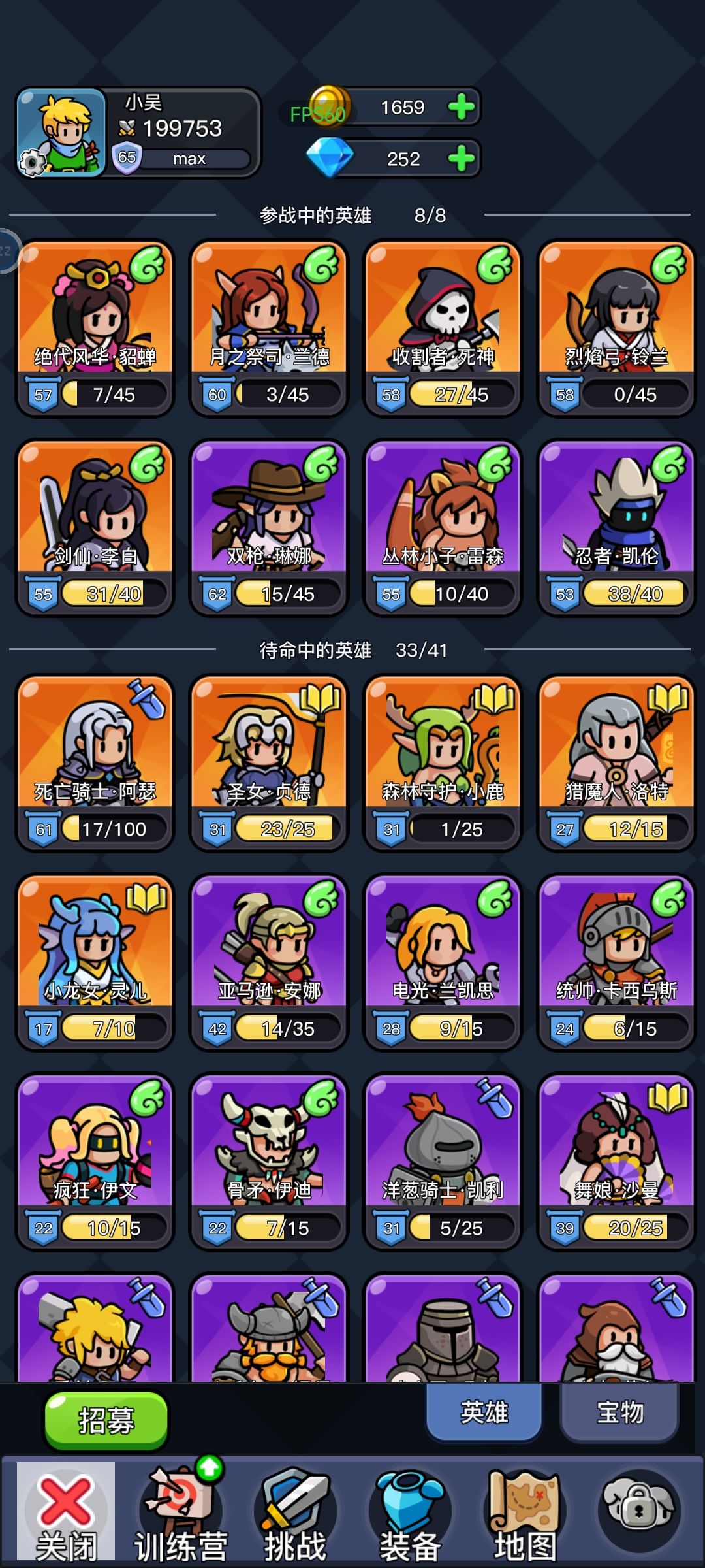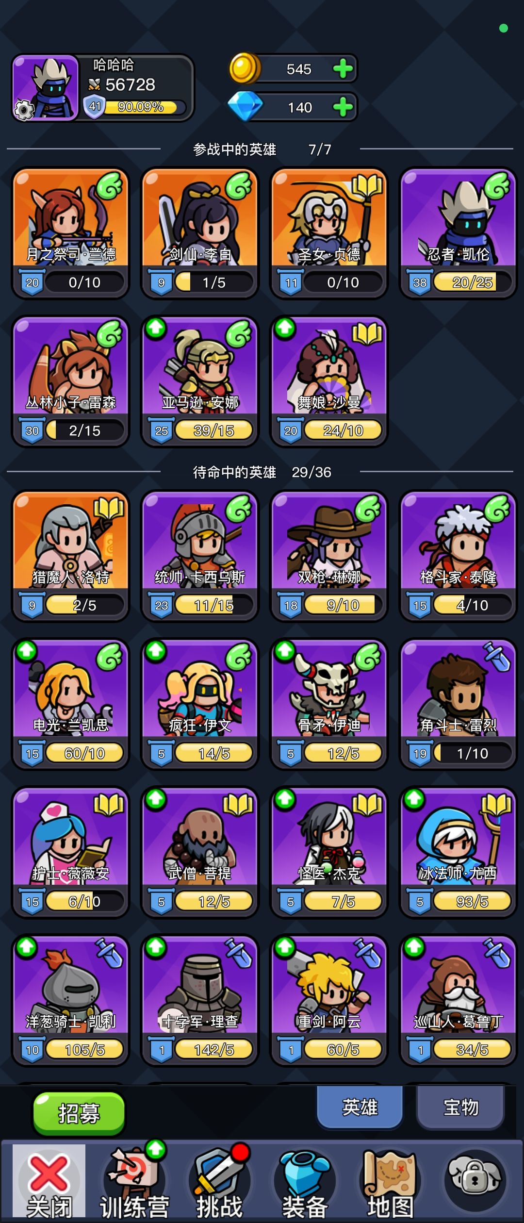 完美契合我口味的一款游戏,希望后续开发能跟上,完美解决了我的游戏荒。玩了5天,上个攻略,希望解决一下新人的困惑。 英雄选择:小鹿必备,武僧必备。剩下的随意组合,以远程敏捷为主。其中双枪单体输出最厉害,忍者群攻爆发最强。其他月之祭祀,烈焰红,亚马逊,丛林小子有啥用啥。漫游者控制减速加速挺好用。剩下我觉得随意搭配,有几个橙色我还没有不好评价。目前我的阵容升级一下,估计通关问题不大。 资源:钻石顶多买副