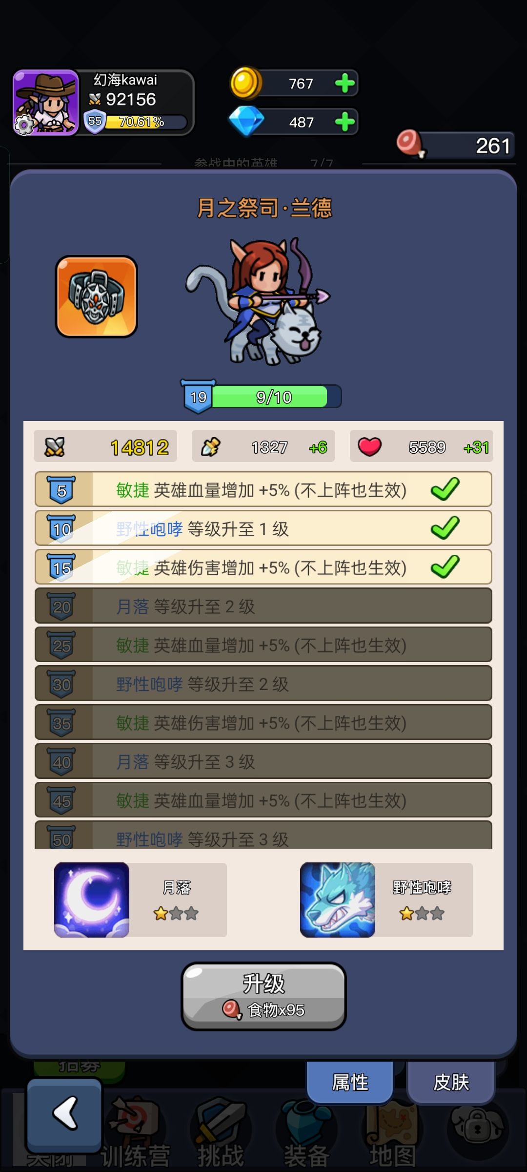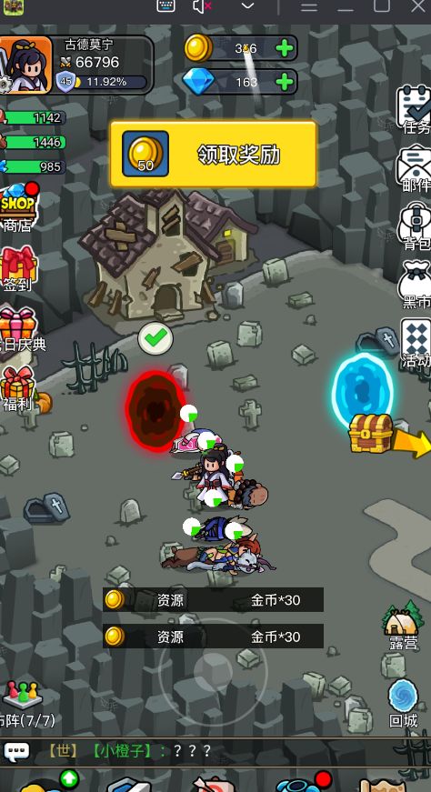 资源前期挂机,等级挂机(搞俩奶不用老看着),看脸抽卡(不知道咋回事,没看懂抽率,反正我只要看到想要的全是300金币抽,橙色李白搞了80次抽才抽到,一下300金币抽到了,多次出现全是我需要的卡片,尤其前期这个小鹿跟有大病一样,老是出现。),免费广告加98基金,如果长期玩训练全开,如果只是为了把玩法都搞完,那更要氪下金。我走的是全敏,打到现在没卡过,打到了神火村 boss,挑战地图第三张,接下来就是神