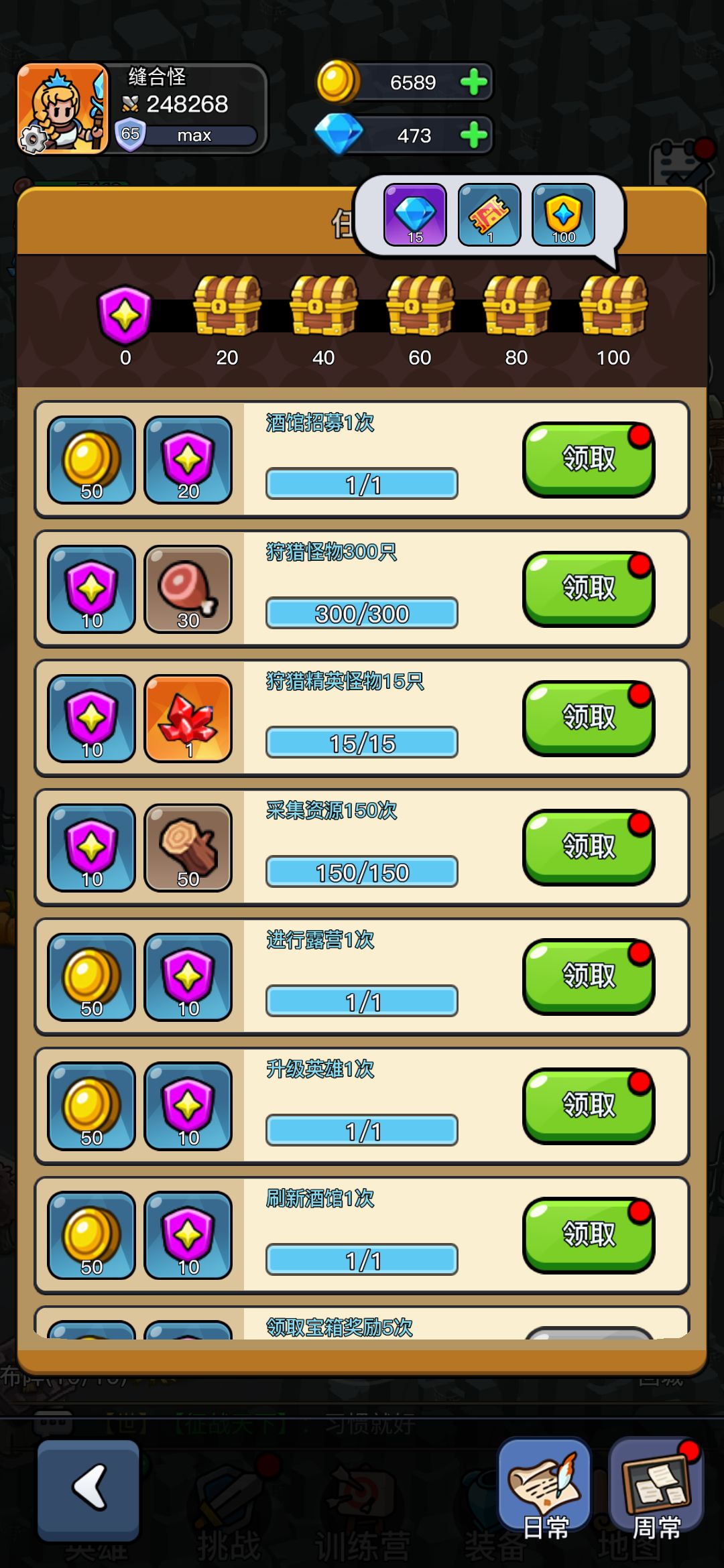 先说6种资源 肉 木头 水晶 红水晶 钻石 金币 肉和木头正常打就不会缺 水晶需要专门挂机前期才能跟上等级 红水晶副本出 看脸 钻石小氪 或者白嫖 基本没用 一周给100 随便花费就是300起步 建议存500 升级训练位 2个半小时一个碎片 最后金币 才是最重要的资源 而且获得方式固定 每天就1000多点 花费就是抽卡 我是非酋 10多次橙卡一次都没抽到 后面紫卡都抽不到 酒馆一次刷新3种 有大