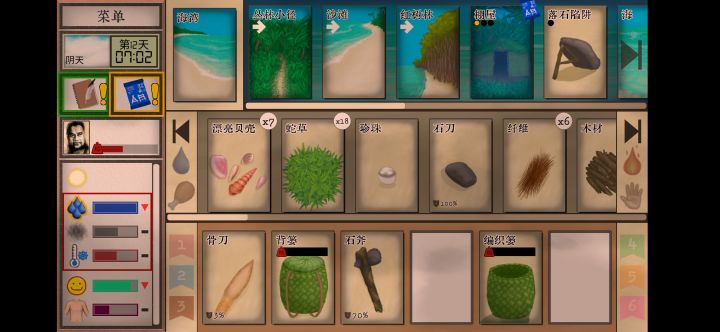 5、建议添加成就系统、添加工具耐久度系统、垂钓、狩猎、陷阱,建议增加一键拿取、一键添柴、一键制作(有些比如油只能一个一个做很麻烦),建议增加多周目、存档。