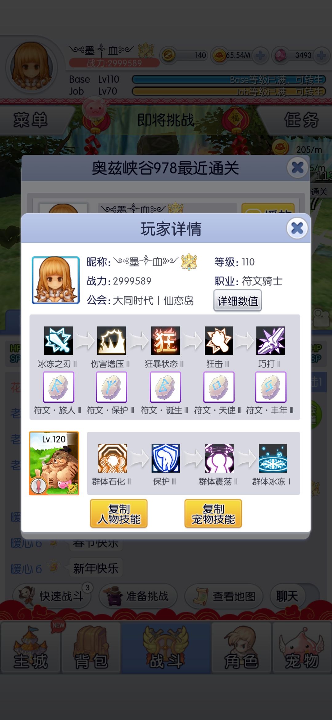 这套技能需要宠物技能一个3级群控,一个2级群控,2个1级群控,3或4级保护。人物符文要求比较高,需要旅人保护诞生都比较高级,最好是满级。 技能搭配如下 需要注意的是人物吟唱最好维持在最低也就是1300,尽量堆物抗法抗。 至于冒险宠物,上图仅供参考,还要看不同账号不同情况具体搭配。 祝各位冒险者早日1000!