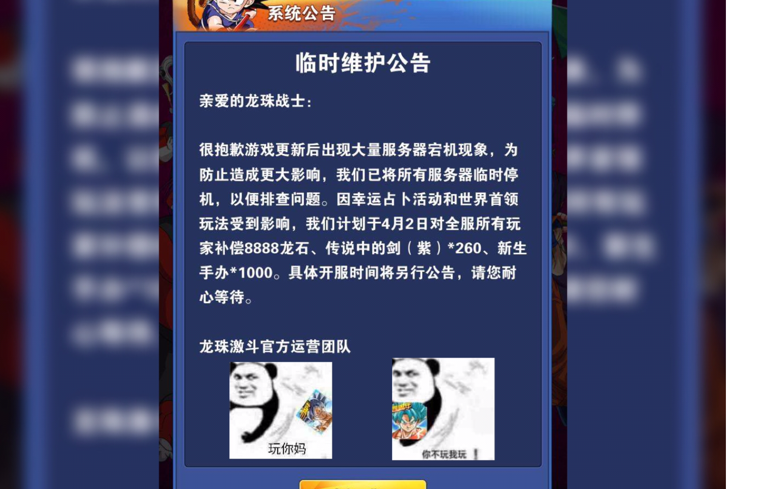 龙珠激斗,点开就黑屏,到现在2020年刚过4月17号的4月18号半夜12点55分位置,今天黑屏的问题已经出现了30多个小时了,所以啥时候能修复,明天可以么,或者后天