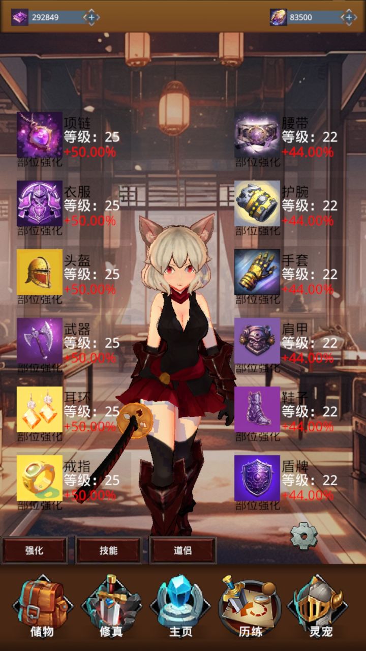 4.优化一下装备一键升级的逻辑,使各装备等级平齐。