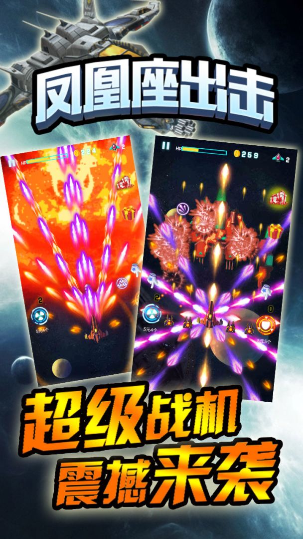 《凤凰座出击》是一款画面炫丽,玩法丰富经典的飞行游戏,游戏里有6种战斗机型任您选择,每一种都能给您带来激爽的飞行射击体验,丰富的道具更为您的通关添油助力。游戏通过不断挑战关卡的方式,逐渐解锁战机,经历夺取最终胜利的奇妙之旅。