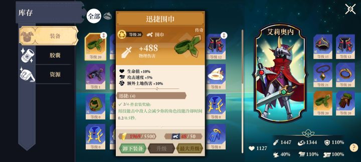 3.配装一般选择一个完整套加一个散套或者说三个散套(我推荐4件套的迅捷加上两件套的策士,以效果生效为准)
