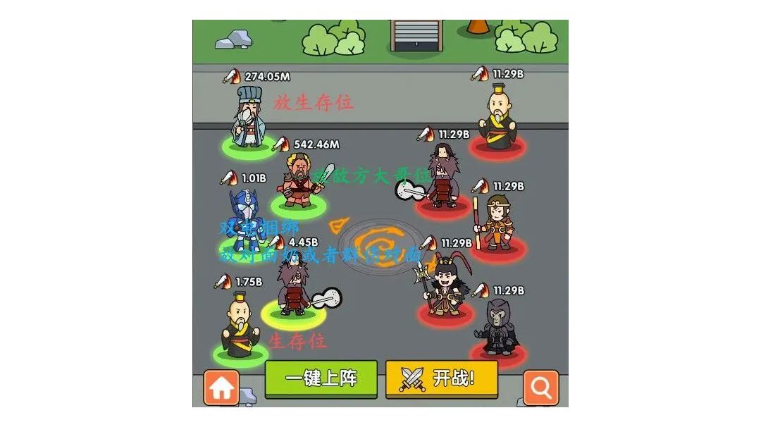 纯个人的小建议给一些新手玩家 零氪和微氪 可以通过活动白嫖一张神吕布(拉满500级不生星战力十几B) 足够到50关 前期刚开局在选择英雄的时候如果抽到带有 “电磁脉冲” 俗称电 “复苏之风”俗称奶 “终末审判”俗称自爆 电:对三个敌人造成伤害 奶就是全体回血 自爆是死亡后对全体敌人造成伤害(自爆角色最后死无效) 带电英雄:(老角色)赛博 红眼 (新角色)魔女 机甲 太上老君 财神 奶妈:太上老君
