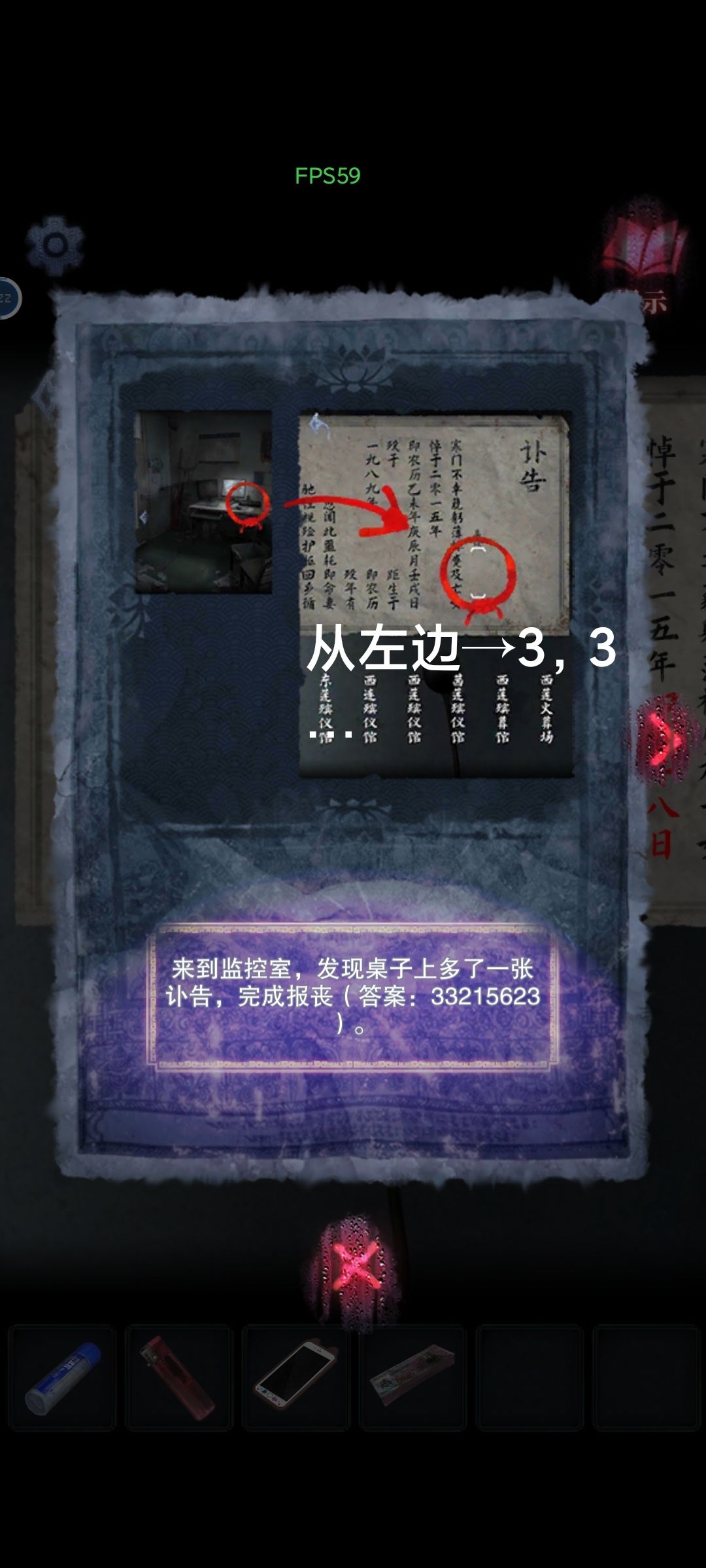 观前提醒,建议大家不要在游玩前参照攻略,以免损失游戏乐趣 ----------------------- 序章部分都有提示,这里我们就先从第1章开始。 拿上乘客给我们的钱,去商店里买需要的东西。 向右探索,发现工具箱需要密码 密码就在老板柜台账本上 8.0.7.4 组装美工刀,用刚刚搬过来的梯子,划开箱子获得香 拜拜财神 窗台上的线索 老板柜台拿上糖和水果 用刚刚乘客给的纸币 占卜获得元宝 占卜都