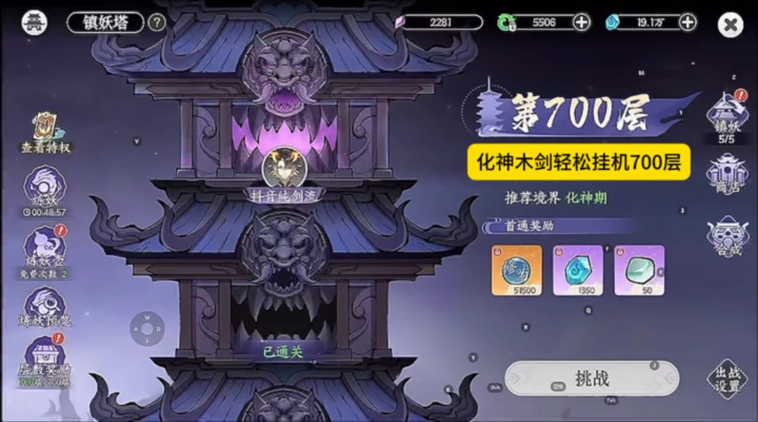 掌门下山化神木剑轻松爬塔700层(木剑词缀展示)