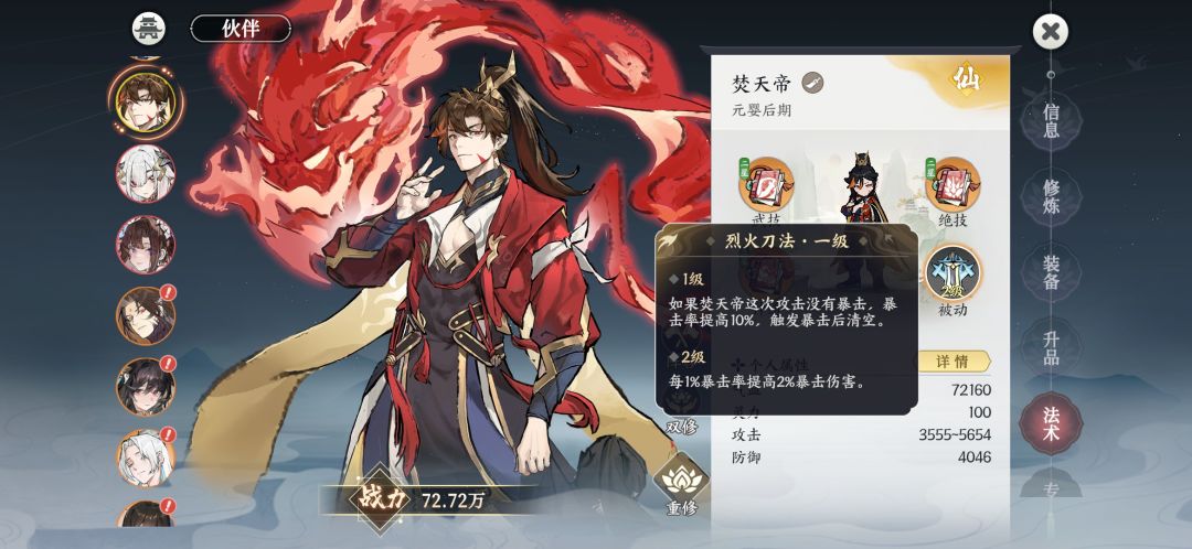 众所周知,剑爬塔坐大牢,那么你们有没有想过这是为什么呢?很简单,因为四金剑爬塔有三个致命的缺陷: 1.身板脆,没有任何免伤效果,低容错。 2.伤害低,特别是对群输出手段匮乏。 3.缺蓝。 理论上来说解决了这三个问题就能缓解剑修爬塔尴尬的境地,那么如何解决这三个致命的问题呢?我看到了火拳身法的技能介绍。。。 最终决定用火拳身法代替剑身法,这样就变成了拳剑流(剑拳流也无所谓。。。) 首先,火拳身法可以
