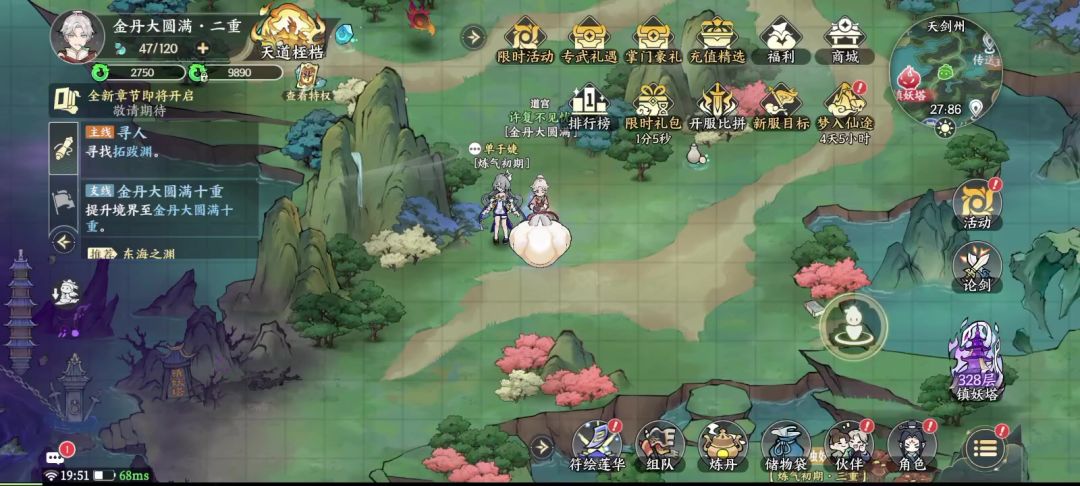 #掌门下山创作征集令 大家好我是福气满满的福天50000261008280废话不多说,咱直奔主题聊聊如何开荒(前期啊想要拉开差距会比较肝,当然你氪金也得肝哈哈哈,金丹后就轻松很多) 到时候也会有主线卡进度,每天正常等恢复体力,上线打几把副本就没事了,慢慢长草就行,游戏自17号上线至今,不出意外大家都卡在元婴大圆满一礼拜啦,氪金玩家可以购买精力丹,突破更极限的一天当天元婴。别学小说里的万年练气期哈哈