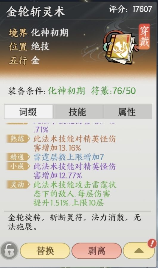 众所周知,掌门下山是一款多人大世界探索类游戏,里面的装备,心法、法术、御剑、本命等等……都可以自由搭配来进行游玩。其中有一本功法,它可以让你诛魔伤害,组队(队友以及自身的伤害都得到提升)伤害都上升一截。那就是《金轮斩灵术》俗称:绝技.金符。 1.为什么上了金符会更高? 答:金符的雷霆层数是给增伤效果的,层数越高,增伤越多 2.金符是什么类型的法术? 答:金符是辅助类型(增伤)的法术,并且自身也有可