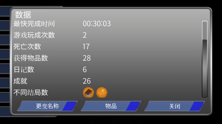 自己今晚上的成果…………物品全收集,虽然成就只显示完成了33个,但有两个已经给出了完成要求,还有一个我大概知道如果解锁只是现在懒得试………………剩下都四个真的毫无线索呜呜攻略也找不到。说说游戏中我现在没搞明白的几个点吧………………1.已知控制器可以输入3219,6969,1337,8251,是否还有更多?2.淫之记有什么卵用?3.控制室的金属开关到底控制着什么地方?4.进入迷宫后可以多次