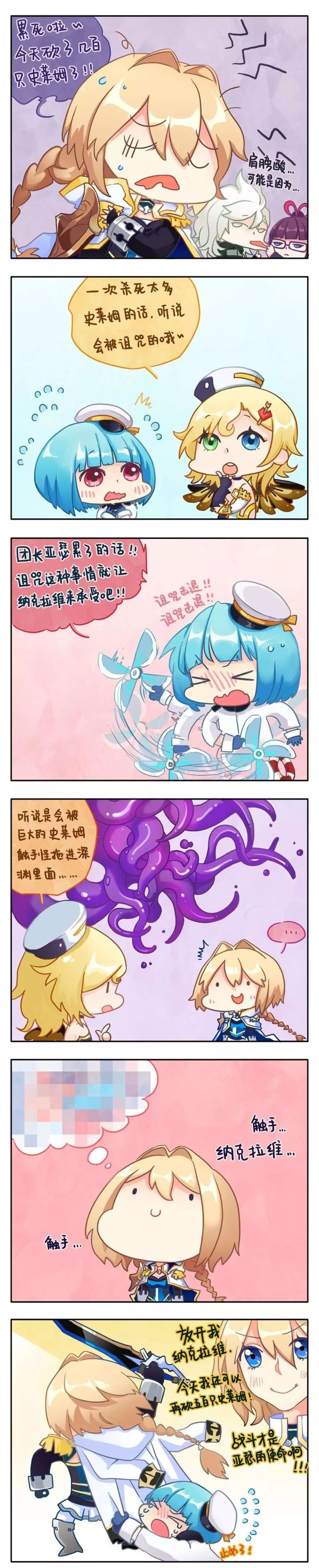 近日不列颠出现了许多新的亚瑟作为小怪的史莱姆表示前线的大人们战斗力实在是过于惊人以至于史莱姆大军出现了人员紧缺的情况...今天@酱爆蹄子 带来的小剧场将为大家揭秘团长大人前线战斗日常~▼传言,一次杀死太多史莱姆的人会受到神秘力量的诅咒(雾)但团长大人似乎一点都不在意每天都鸡血满满地在前线扫荡史莱姆大军↓↓↓漫画by:酱爆蹄子团长:史莱姆,站起来,再战八百回合史莱姆:救命