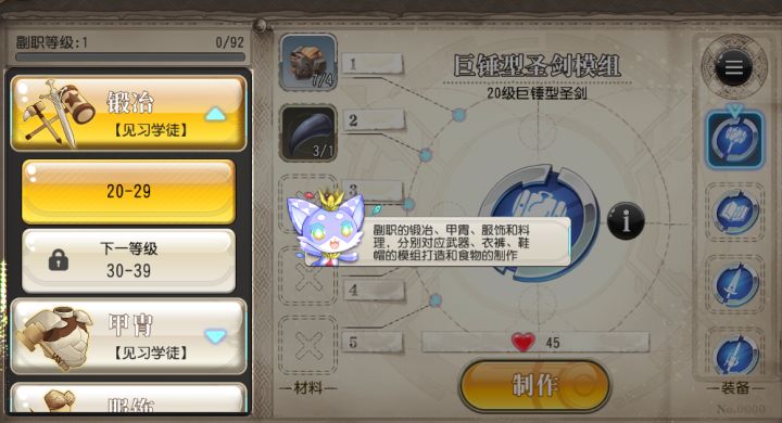 相信大家一定在游戏里发现“副职”这个功能了吧,这里我来为大家简单介绍下这个功能。比如说在游戏中获得了这种道具,但是却无法使用提示需要副职,这种就是副职制造所需的材料之一,当然材料还包括很多乱七八糟的道具比如说“有毒触手”“小树枝”。玩家在20级后可以解锁副职功能,此时会出现教程引导玩家制作第一个物品。除了这个引导之外,外加也可以拿自己获得的材料来制作东西。就拿上面那个图纸为例。对图纸点击